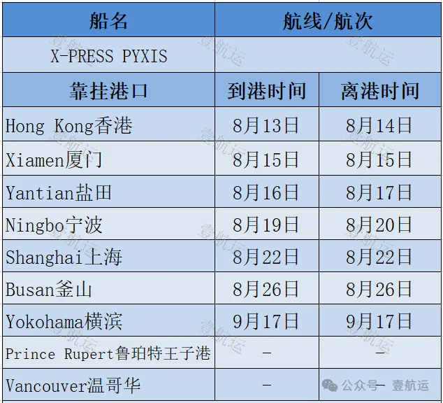 船讯网为壹航运提供的数据显示,X-PRESS PYXIS轮此前曾挂靠香港、厦门、深圳盐田、宁波、上海等中国港口。